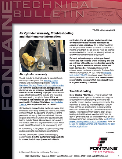 Fontaine ARMOR cold weather maintenance TB-064 | Armor Inspection and Maintenance Procedure TB-066 | TB-008 | How To Measure Your Fifth Wheel TB-018 |