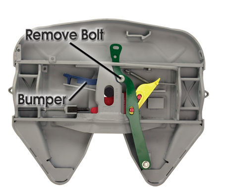 3. Unbolt and remove bumper from operating handle. Discard lock nut and bushing.