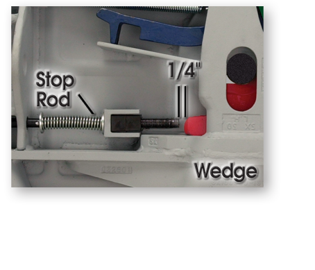 Close the fifth wheel several times with a standard 2" kingpin tool. With the lock closed, adjust the wedge stop rod so that the end is 1/4" from the wedge. See Module 1: No-Slack® preventive maintenance for more information on the adjustment.